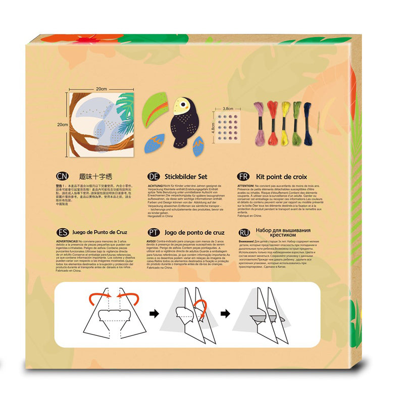 • Bright toucan design makes stitching fun