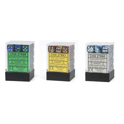 • Lustrous 12mm D6 Chessex Dice Block (36 Dice) - Black with Gold Pips