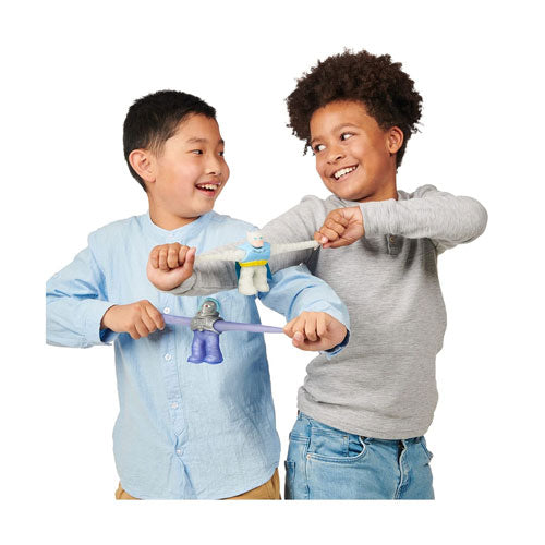 Battle them together like you have never seen before! Super durable, their stretchy bodies can stretch up to 3 times their size and then return to their original shape and size! Discover a new way to play and save the day with these cool collectible toys!