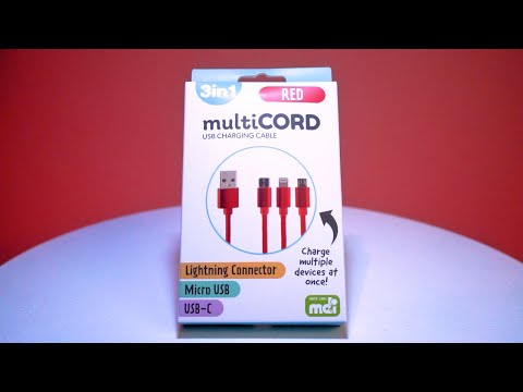 Multi-functional charging cord with 3 different connector types.