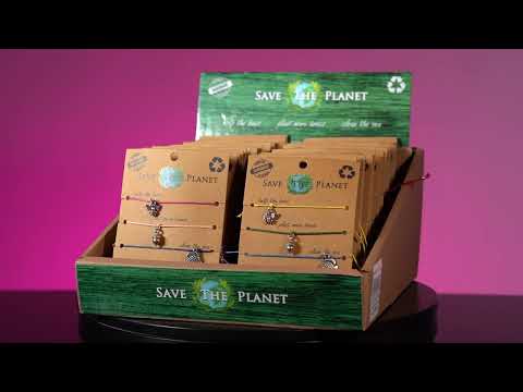 Set of 3 'Save The Planet' cotton bracelet handmade by artisans. Features three symbolic charms; a bee, acorn and fish. This environmentally friendly bracelet is ships randomly between vibrant colours