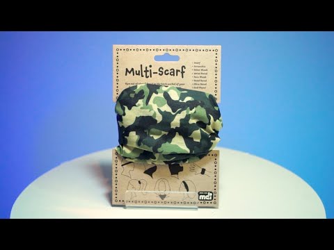 • Green camo print scarf that's also a scrunchie, or a mask, or a headband, or a wrist band...and more!